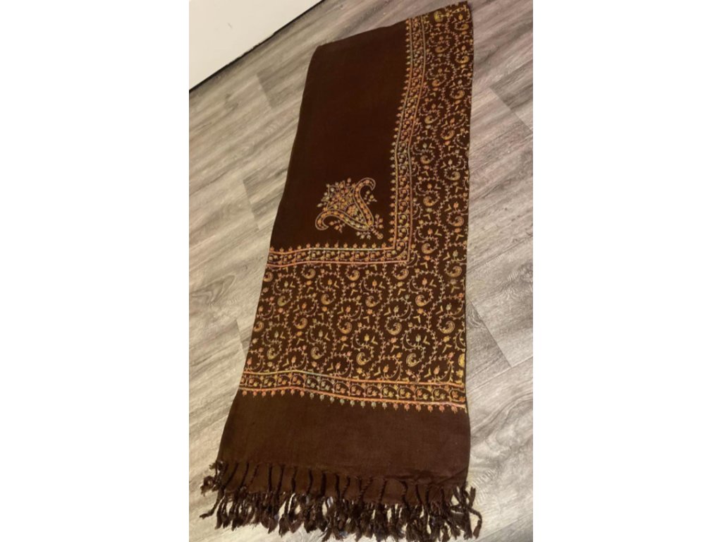 Čokoládový vyšívaný šál