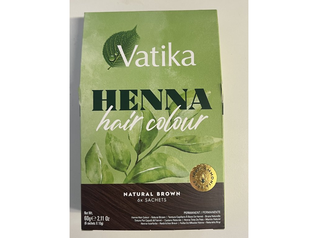 Balení obsahuje 6 sáčků po 10 gramech barvy. Dle délky a hustoty vlasů vystačí až na 6 obarvení. Uchovávejte na suchém, chladném místě a mimo dosah dětí. Barva henna Vatika je permanentní, nesmývá se. Návod na použití: obsah jednoho sáčku smíchejte s 40ml vody. Pomocí přibaleného kartáčku aplikujte na vlasy. Nechte působit 30 minut, poté důkladně opláchněte vlažnou vodou. Další doporučení pro nejlepší efekt barvení hennou: